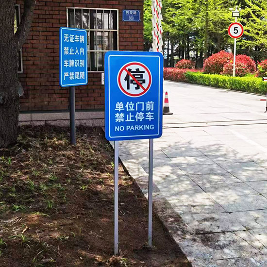 标识牌的尺寸、颜色和图案等必须根据相关的交通标志标准来制作。对于禁止停车的标识牌,通常采用蓝色背景和红色的圆形图案,内部带有白色的斜线,中间写有“禁止停车”字样。