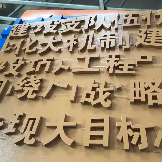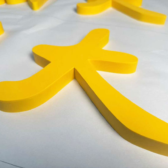 青岛发泡板焗漆字:以PVC发泡板为基材,雕刻成型后进行喷漆与低温烘烤处理。发泡板质地轻、易加工,适合制作大尺寸字。重量远低于金属类字,适合大面积或高空悬挂。主要应用:展会布置、临时活动背景墙、促销展板、室内导视系统。